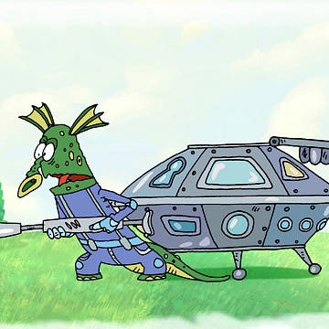 На землю с целью вторжения высаживается десант инопланетян. Первой они встречают маленькую девочку, которая читает книжку с загадками. Слушая эти загадки, пришельцы пугаются и улетают назад.реж: Рим Шарафутдинов • Юпитер-XXl • Россия • 2023 • рисованная анимация • 6 мин 18 сексмотретьМультфильм доступен для зарегистрированных зрителей.